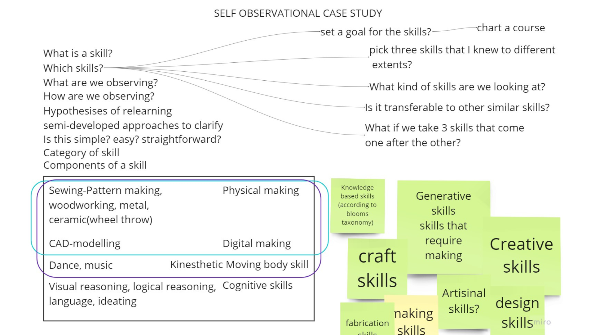 After brainstorming I decided on 3 broad domains i.e. reflecting, ideating and making. The next step was brainstorming how to help designers in these 3 domains. What emerged was a set of cards, post-its, blocks, puzzles and a bag.