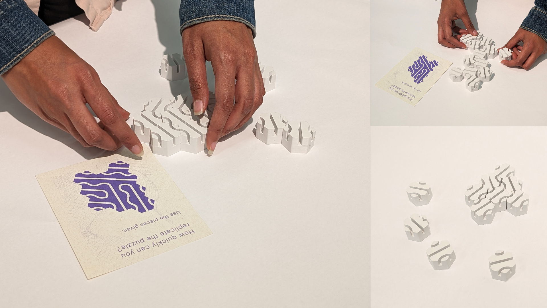 The tactility and auditory aspects of the puzzles and blocks were considered. Hence they were 3-D printed.
