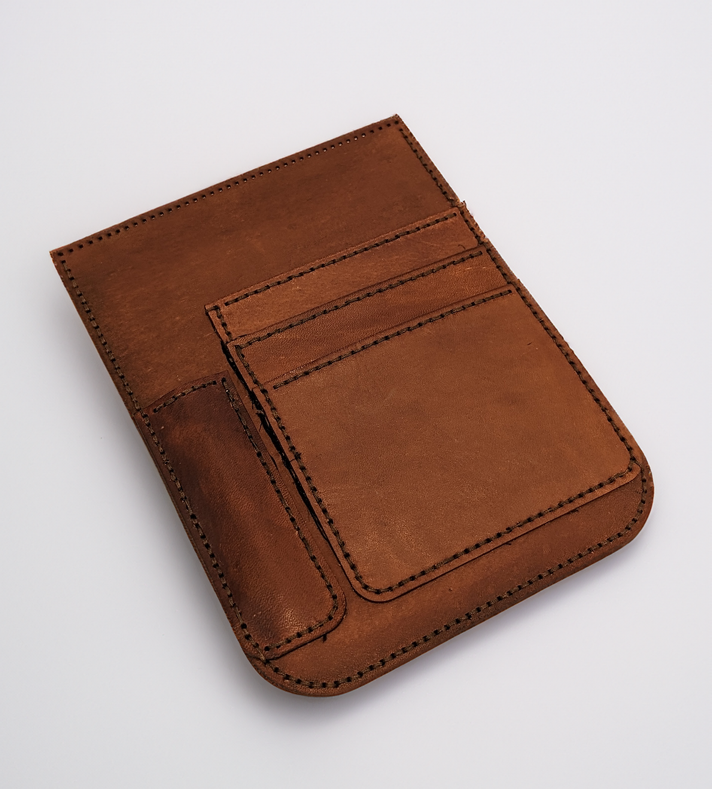 A hand-crafted genuine leather bag which has exquisite detailing like the laser engraved design, decorative stitching, complex piecing and a detachable pocket. It is meant to embody the elegance of a designer’s work bag. The bag also features a detachable pocket using snaps.